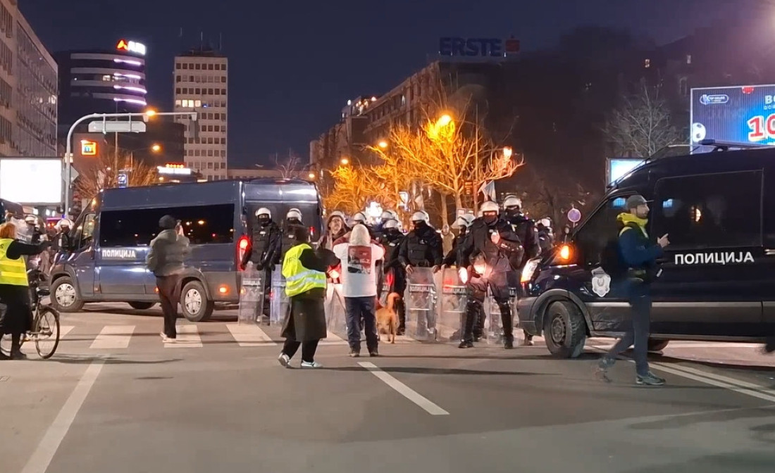 Dana 17. februara oko 19 sati, jedan građanin se vraćao sa šetnje sa svojim psom kada je primetio saobraćajnu policiju koja je blokirala Bulevar Nikole Tesle i usmeravala vozila u suprotnom smeru. U daljini se čula galama koja je ukazivala na proteste, a građanin nije imao nameru da se zadržava, već je želeo da pređe ulicu i ode kući.