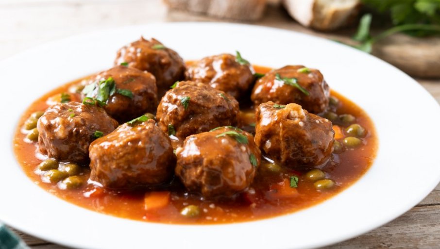Zagrijte maslinovo ulje u tiganju na srednjoj temperaturi i kratko ispržite ćufte, otprilike 3-5 minuta, dok ne dobiju zlatno-smeđu boju. Ovo će dodati dodatni sloj ukusa i teksture. Nakon što su se ćufte ispržile, dodajte paradajz sos, krompir isečen na sitnije kocke, smrznuti grašak, kao i goveđu supu. Posolite i pobiberite po ukusu, pa poklopite i kuvajte na umerenoj vatri oko 30 minuta.
